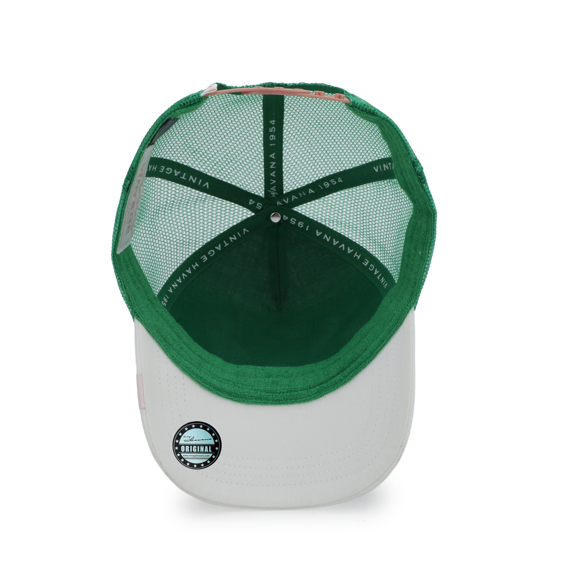 Vintage Havana Trucker Hat for Women – Green Mesh & Off-White Canvas Adjustable Cap with Pink Star