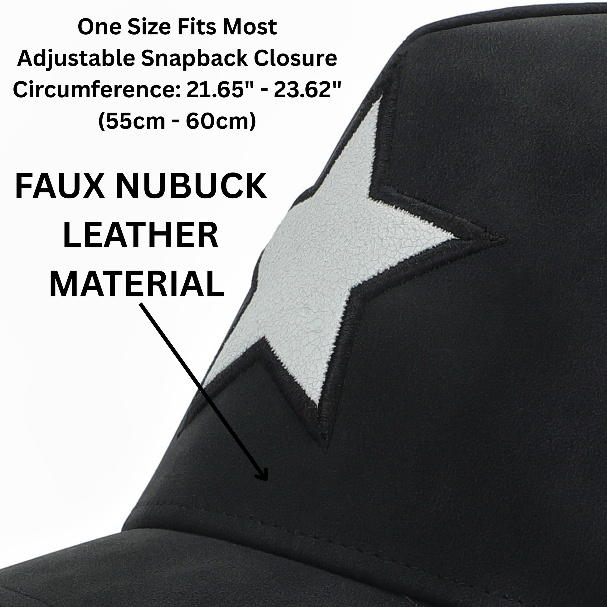 - Product Specifications: Trucker Hat front panel is made from faux nubuck leather. Back panels are made of breathable polyester mesh. Compatibility Details: This trucker Hat fits most adult head sizes and features an adjustable snapback closure. Hat Circumference: 21.65" – 23.62" (55–60 cm).